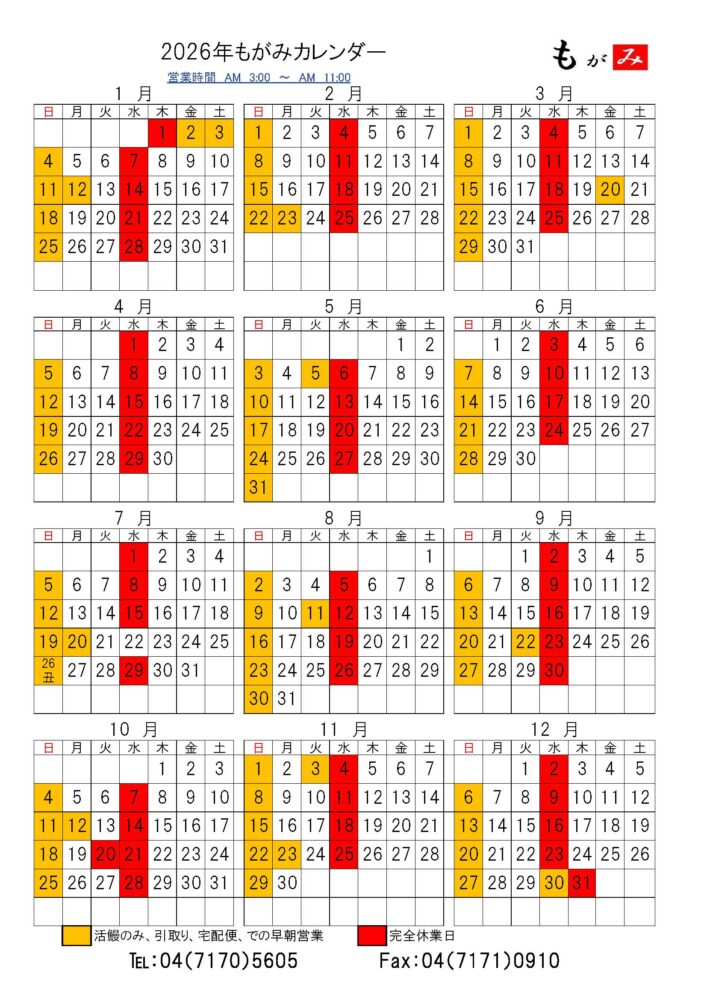 | 営業日 | 2026年営業カレンダー (ダウンロード) |